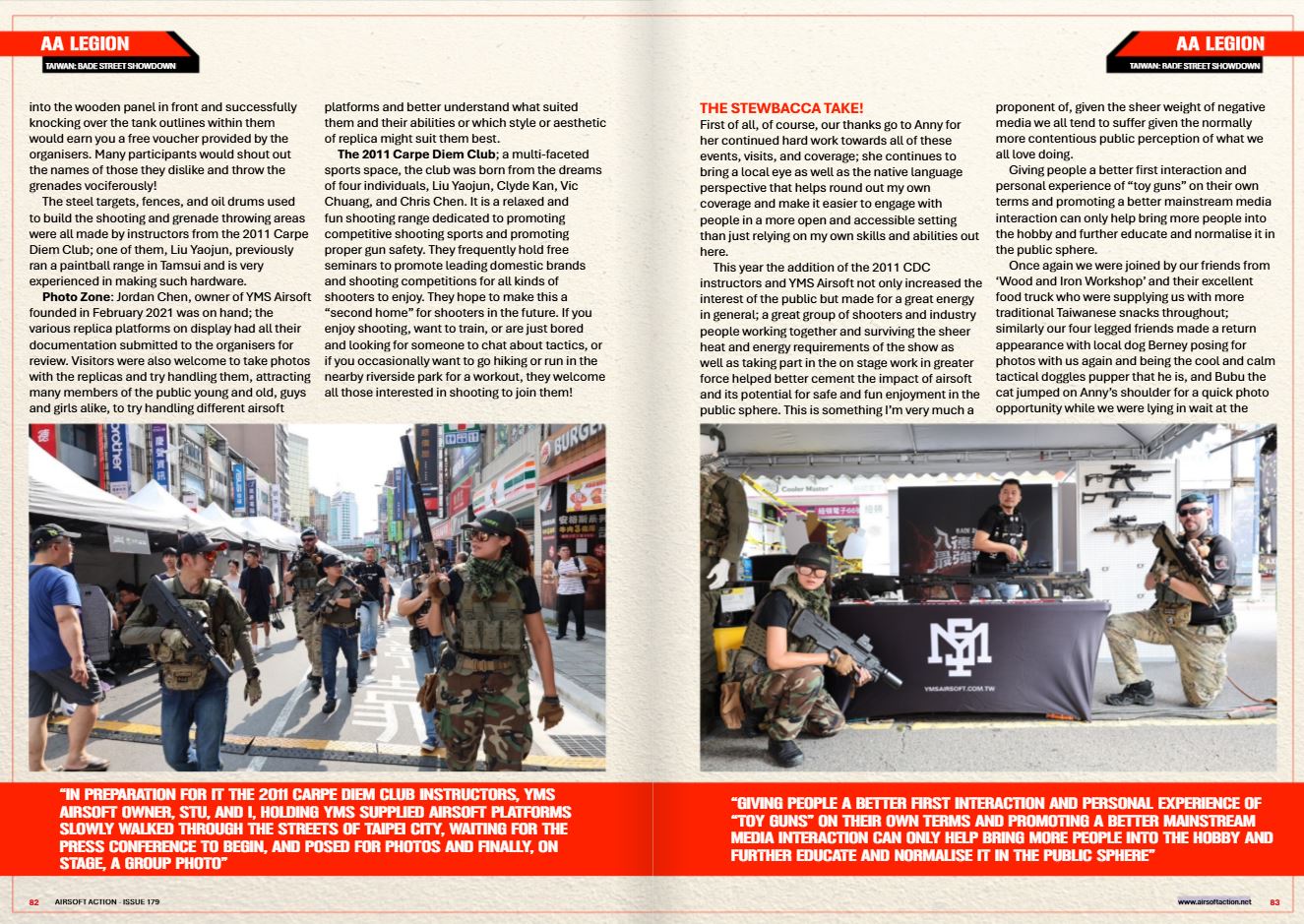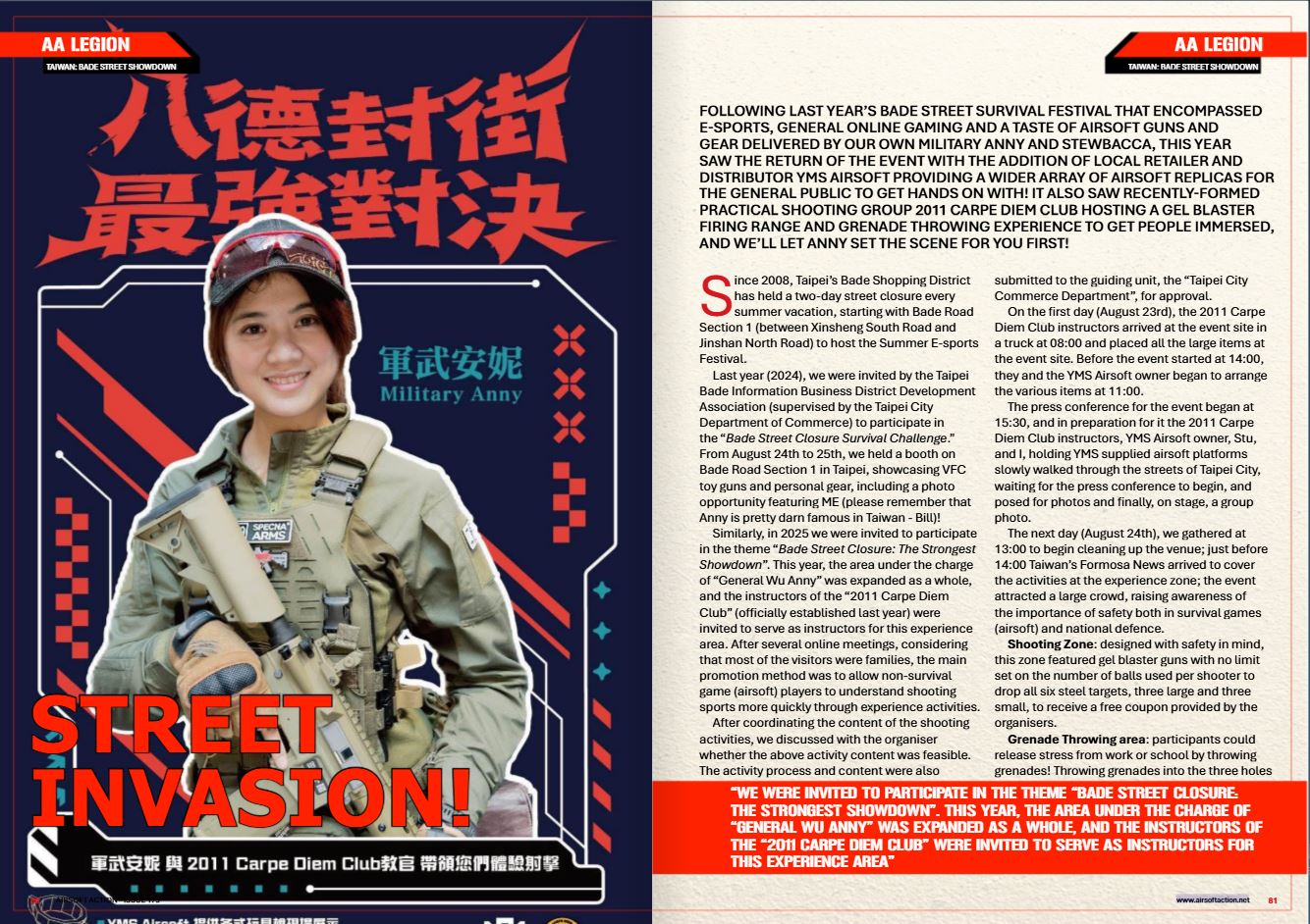 To round things out this month as always we turn to airsoft events around the world as Stewbacca and “Military Anny” tell of their exploits at this year’s BADE STREET SHOWDOWN, and then Stewbacca lands his main (HUGE!) in-depth report on the ACTION AIR WORLD SHOOT!