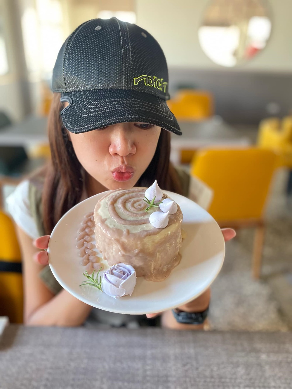 ▲蛋糕端上桌的瞬間,眼淚差點湧出。私下低調的我,並不會特別宣告生日將至,但這份用在地芋頭製作的蛋糕卻是「我最愛的滋味」,在內心欣喜疊加味蕾的香甜開心地度過整個午後。原來,島民的記憶 與 老村長休憩站 創辦人洪念希,知道我對烈嶼在地芋頭的喜愛,特別為我客製了一款芋頭蛋糕。每一口,都能嘗到她溫暖又細膩的用心。