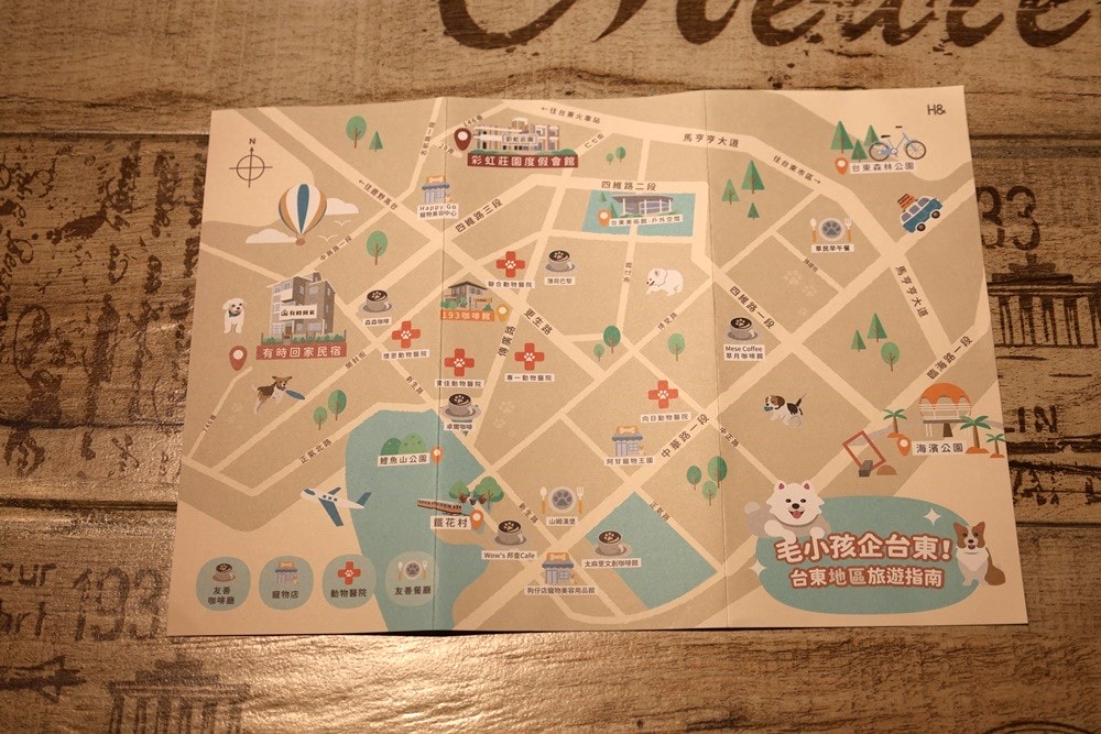 ▲台東地區毛小孩旅遊指南,把毛小孩可以去的景點、餐廳、咖啡廳通通標示出來。