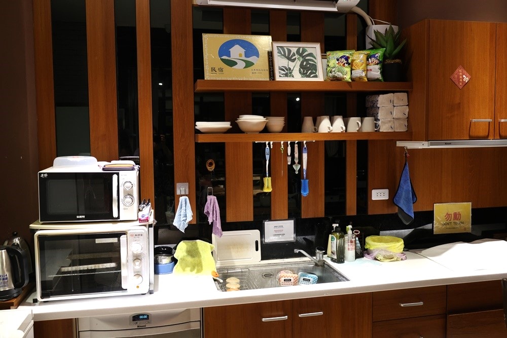 ▲這裡的杯子、盤子、烤箱、微波爐等,都可以自行使用。