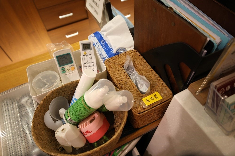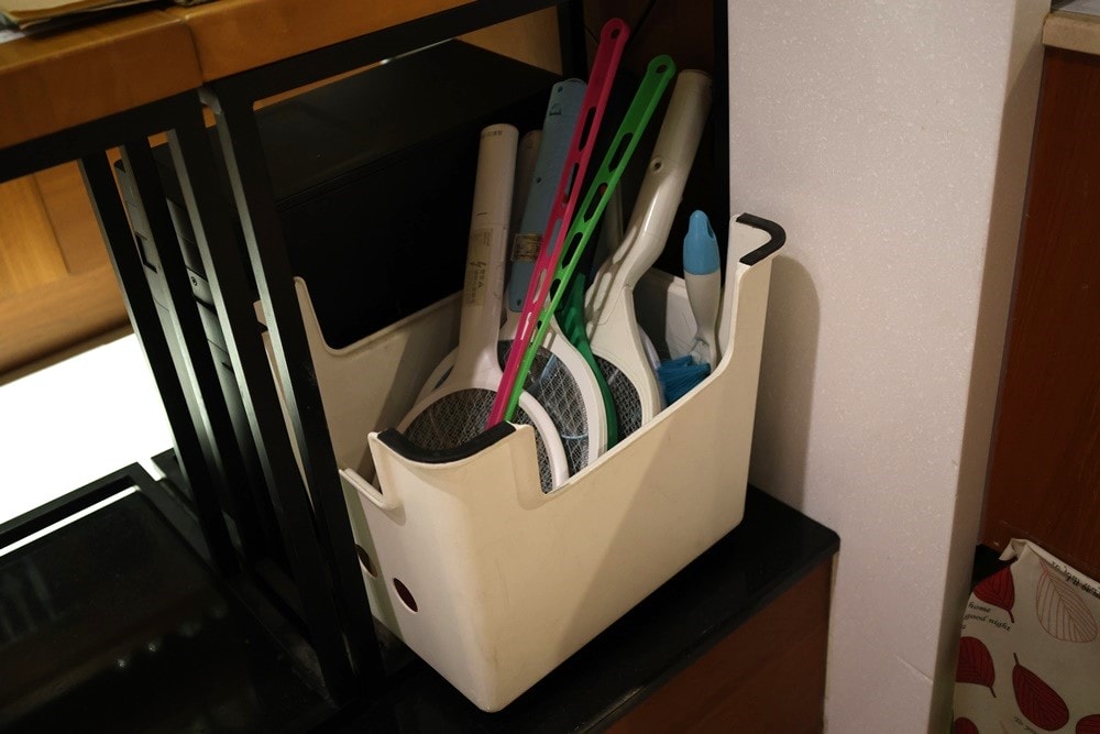 ▲彩虹莊園旁是一大片稻田,管家怕蚊蟲影響大家的好心情,特別擺放電蚊拍、防蚊液、電蚊液等,供住客自取使用。