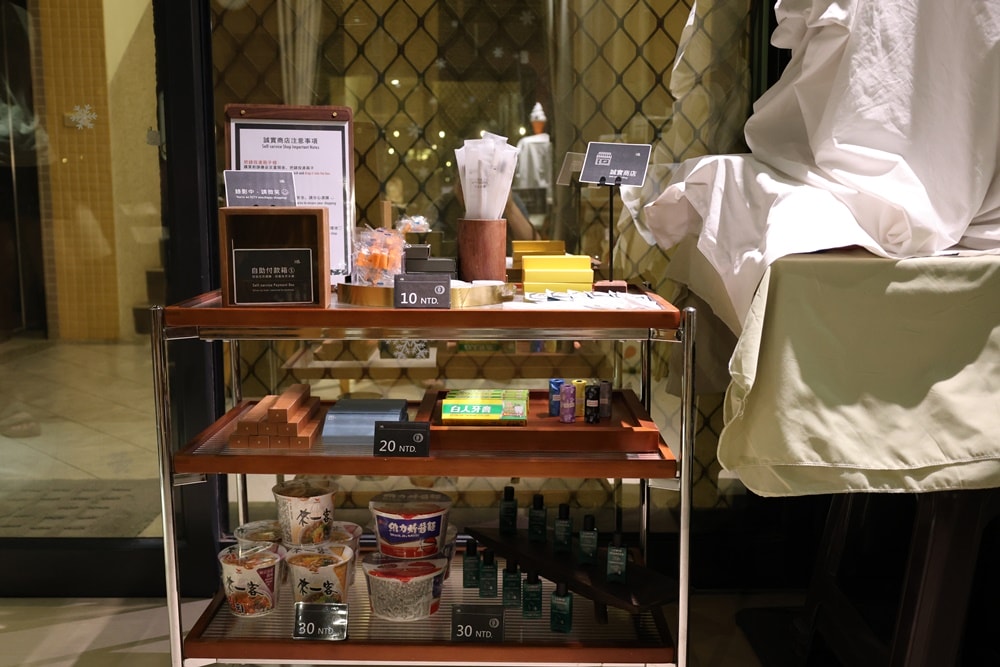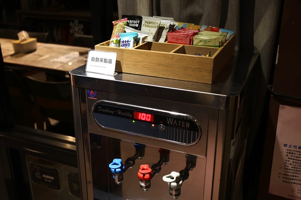 ▲飲水機上的自助茶點區,都是免費提供給住客使用。