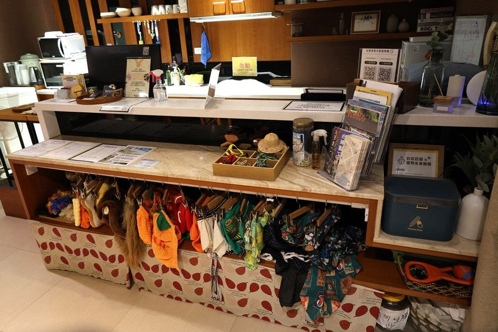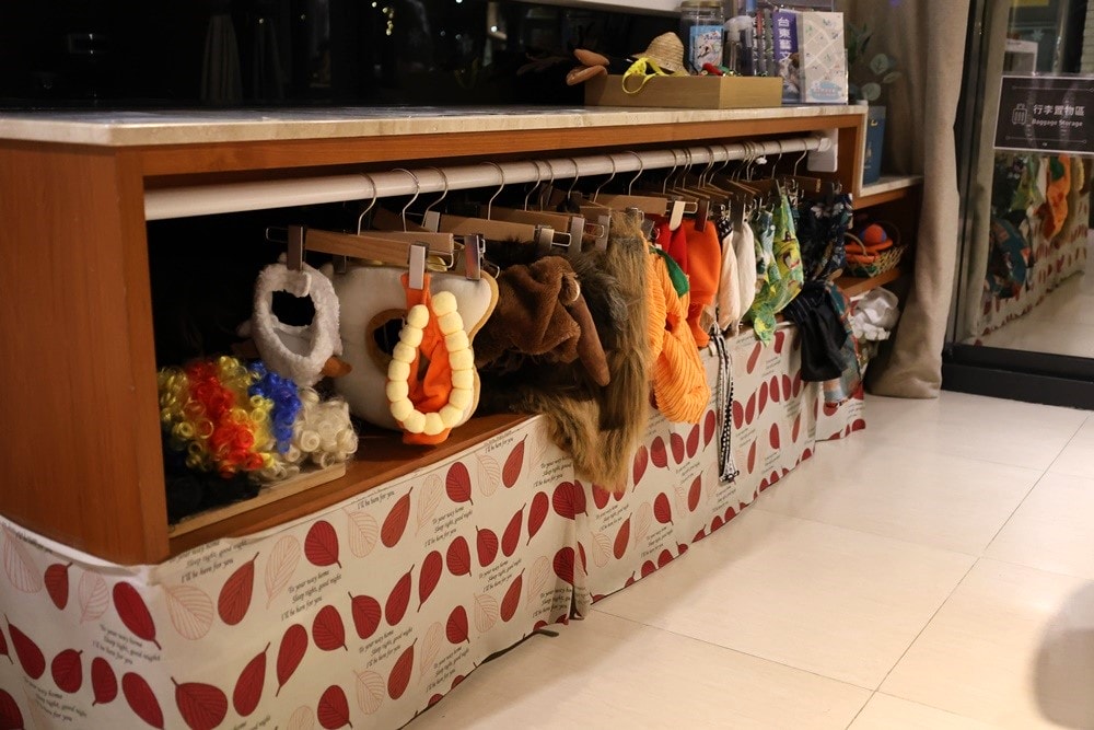 ▲免費提供給毛小孩使用的各式服裝、飾品、帽子等。各位觀眾我們有請Ken將來場變裝秀。