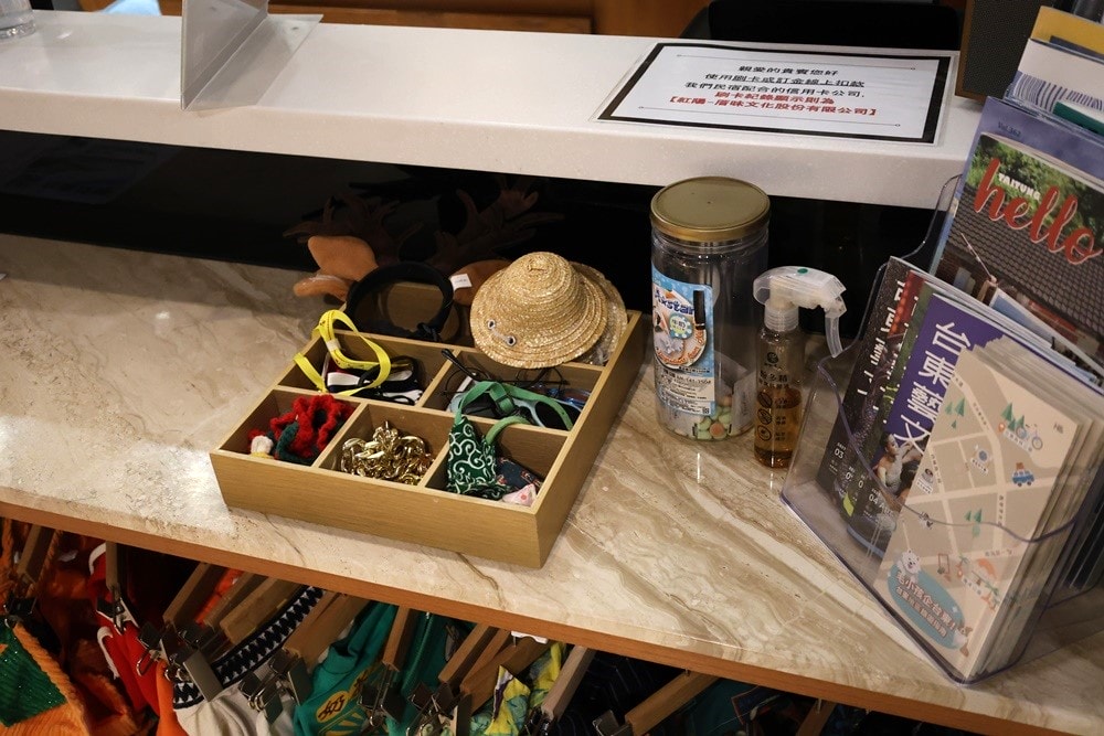 ▲今年1月份開始,所有的旅宿業不再提供一次性備品。彩虹莊園很貼心設置「誠實商店」,讓沒帶到備品的朋友可以此購買。
