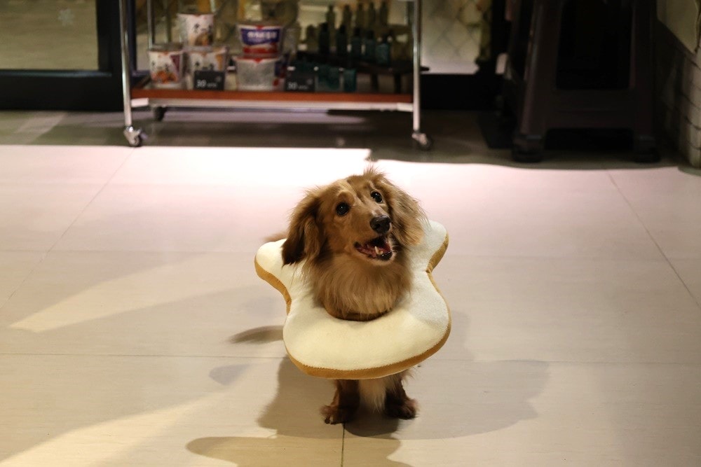 ▲Ken將表示,現在我變身成吐司臘腸狗,請注意!可以摸摸、拍照,但禁止食用喔!