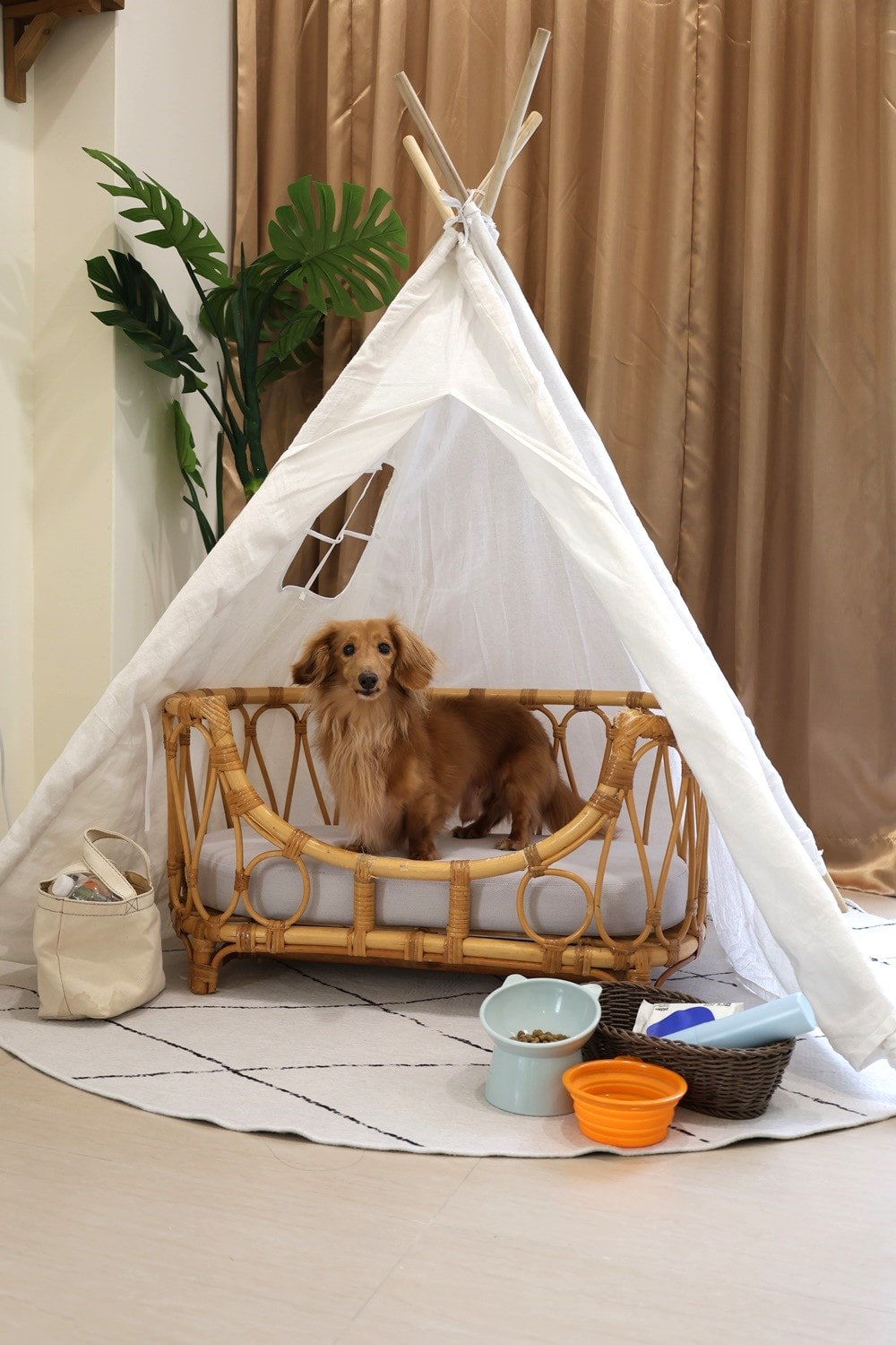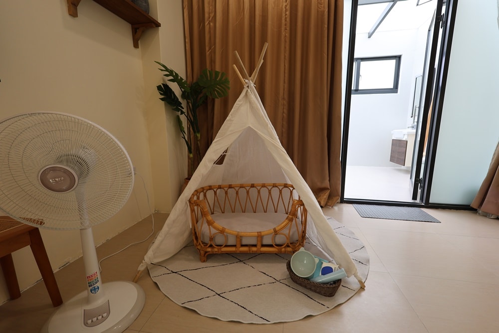 ▲好可愛的印地安寵物帳篷,一點異味都沒有,旁邊還擺放電風扇可當循環扇使用。