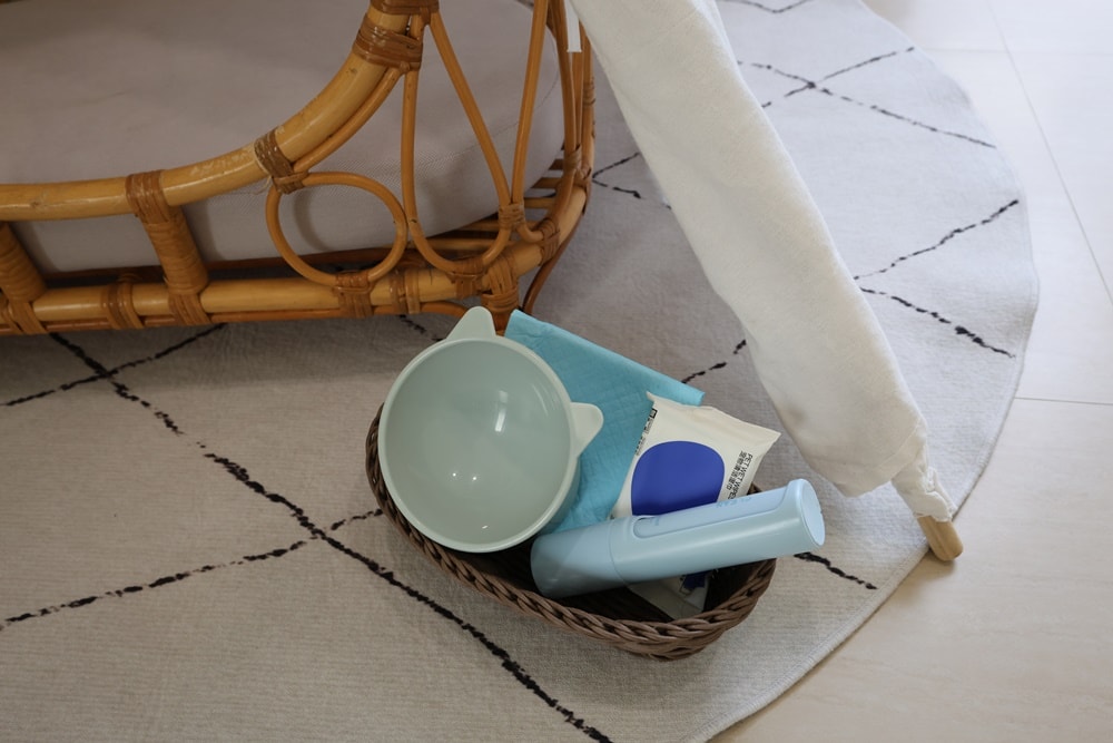 ▲民宿提供毛小孩專用的濕紙巾、尿布墊、水碗等。(訂房時備註會帶寵物,管家就會安排居住寵物房型)