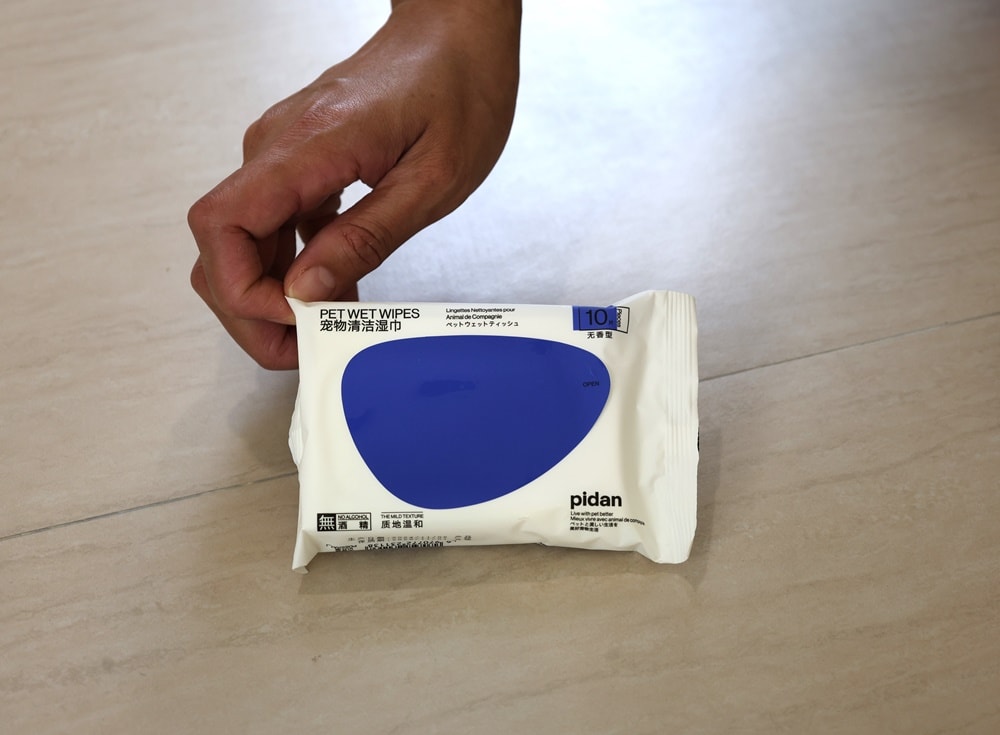 ▲有養毛小孩的人一定會準備的濕紙巾(沒有酒精成分),擦拭腳腳跟屁屁用。