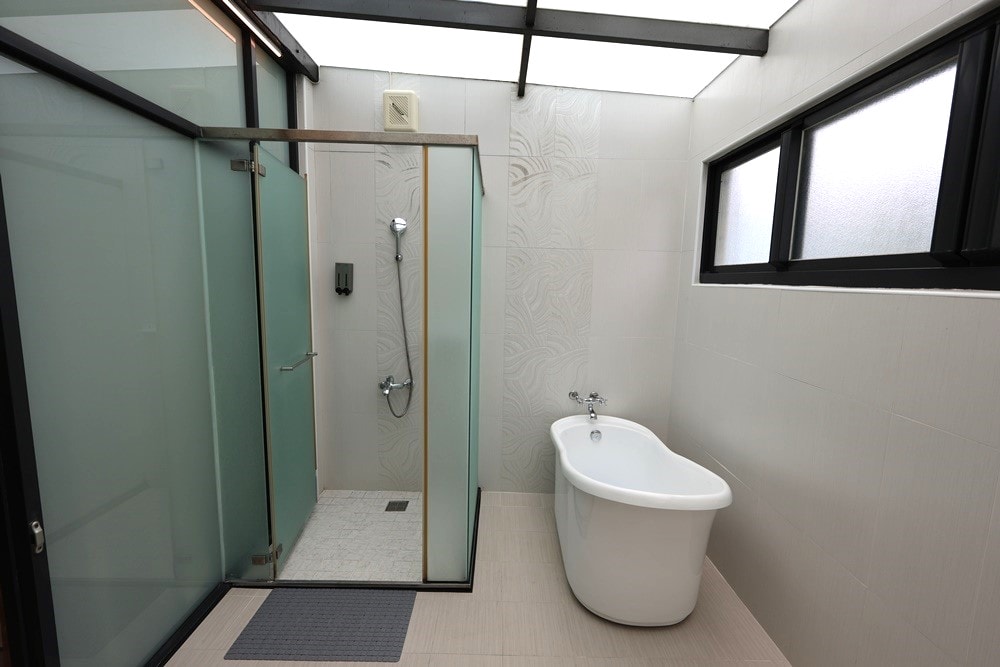 ▲獨立的浴缸,有點微斜度的設計,躺起來很舒服,安妮的大長腿可以完全伸直。