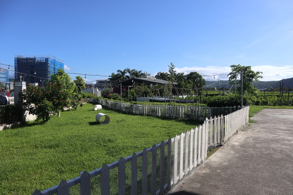 ▲草皮四周設有柵欄,可以放心讓毛小孩奔跑。