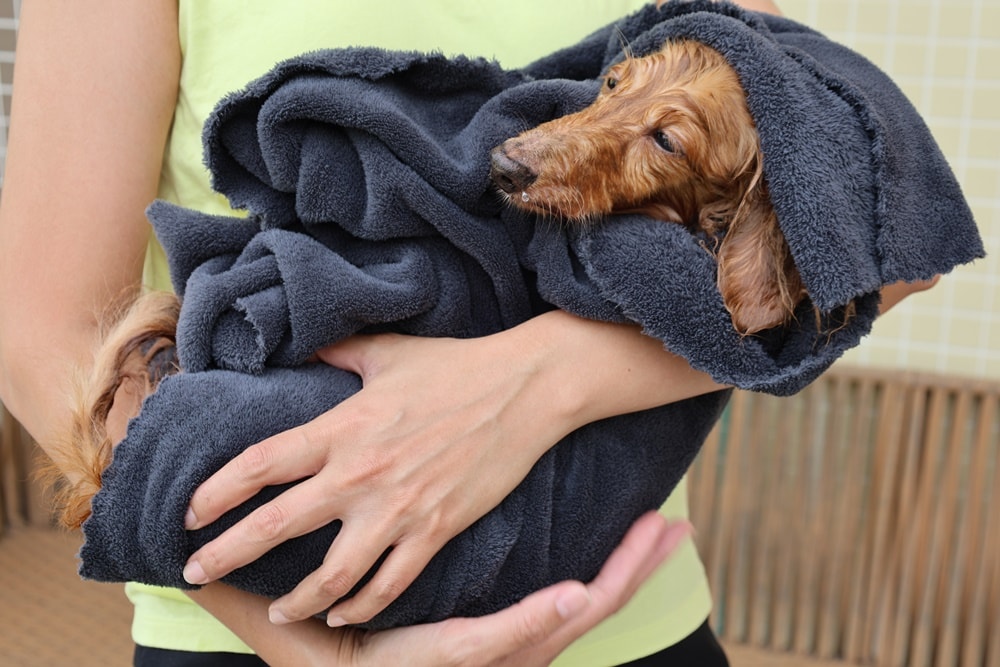 ▲寵物洗澡用品有澡盆、沐浴乳、寵物梳、吹毛機、毛小孩專用浴巾。