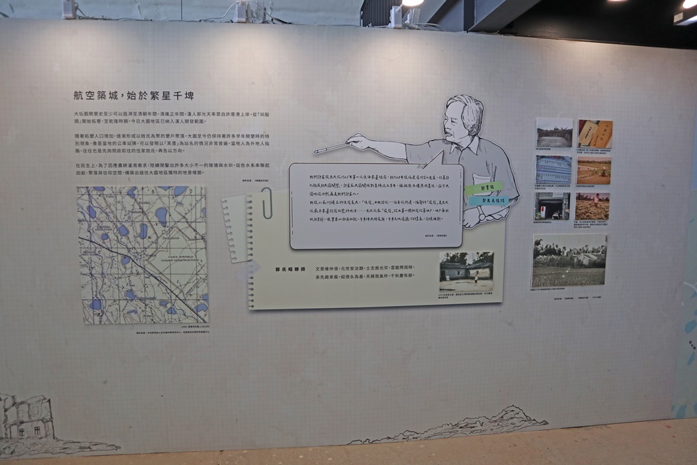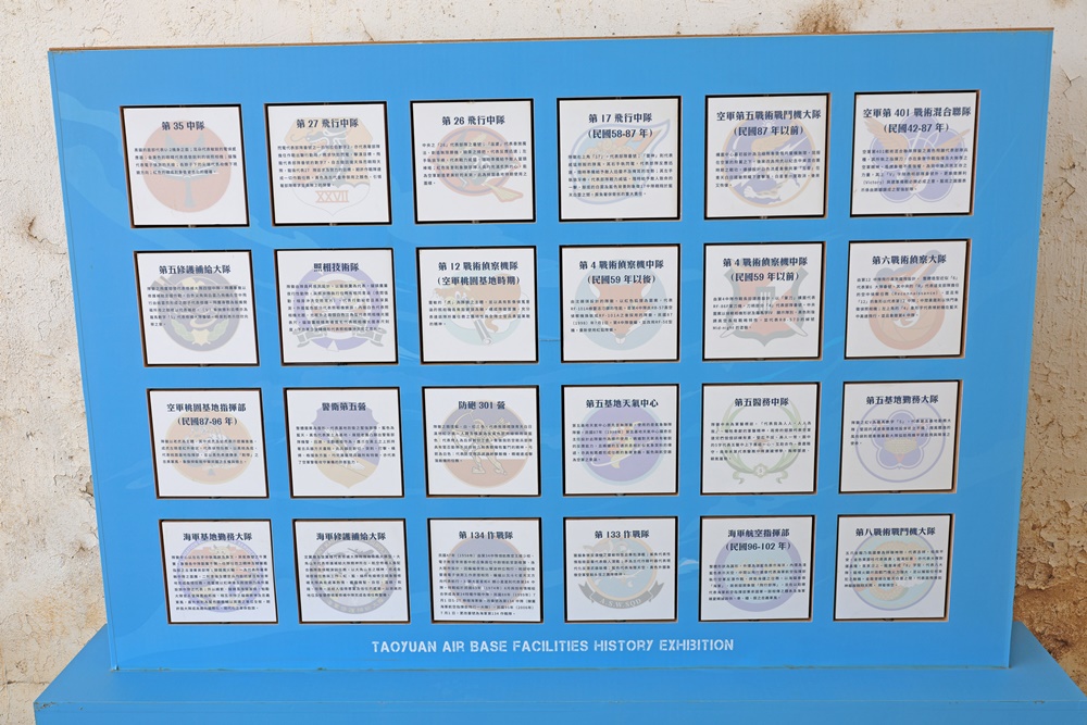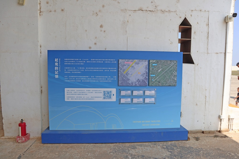 ▲這裡詳細記載了航空城基地的歷史沿革,並展示各式文物。日本在二戰期間興建了桃園飛行場,主要用作軍事用途。戰後基地移交給中華民國空軍,成為重要的空軍基地,運作了近半世紀,一直到1998年。之後為了配合海軍需求,基地於2007年轉型為海軍桃園基地,持續運作到2013年。隨著時代與軍事需求的調整,基地於2016年正式除役,之後展開古蹟活化計畫,轉型為文化資產,不僅保存了歷史紋理,也賦予這片基地新的生命與功能。