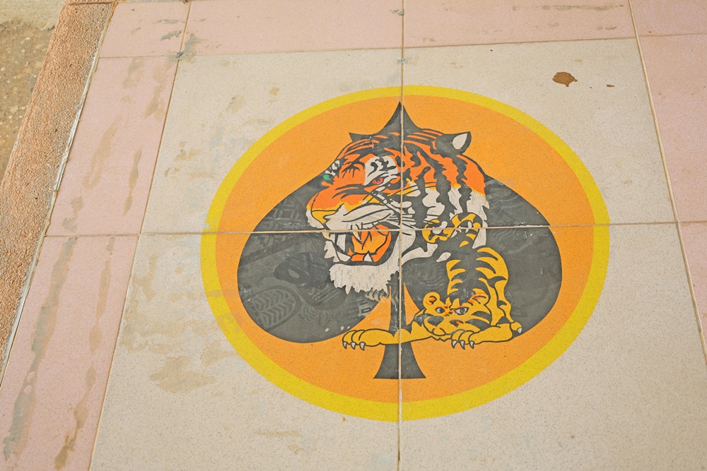 ▲原本位於空軍桃園基地指揮部大樓門口兩側的「空軍桃園基地指揮部隊徽」,隊徽上描繪了兩隻老虎一大一小,象徵「大老虎帶小老虎」的訓練與提攜精神。你有沒有注意到,大老虎的右眼珠呈現紅色?這並非單純的設計巧思,而是象徵第4中隊執行偵照任務的榮耀與使命,彷彿在凝視整個基地,也提醒人們那份責任與承諾。