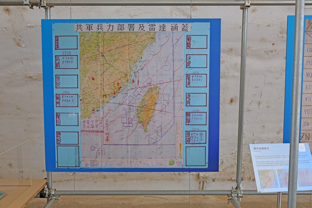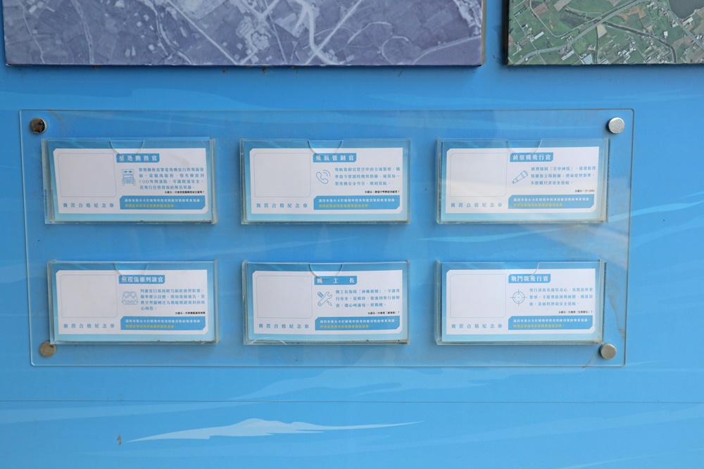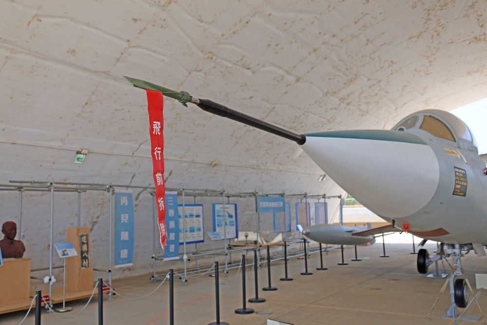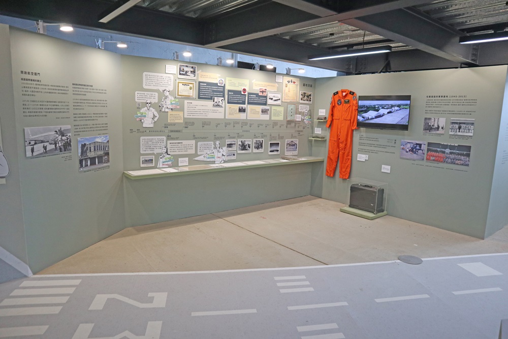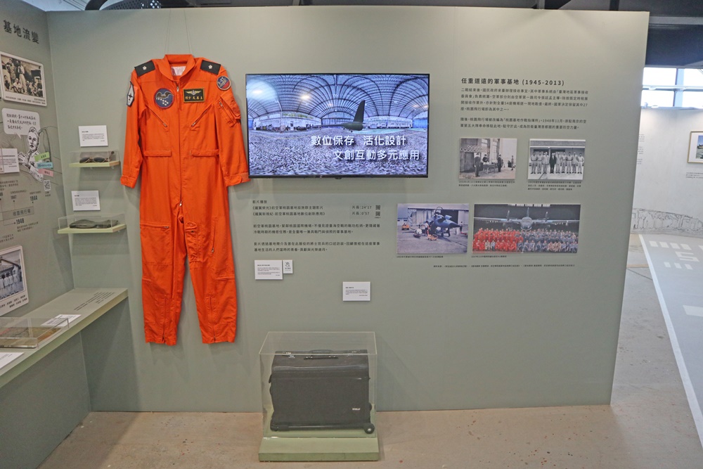 ▲這裡展示的是「飛行員的裝備架」,主要擺放飛行頭盔與背負式降落傘包等必備裝備。現場還展出了由國防部空軍司令部提供的第五大隊第26中隊個裝室照片,讓參觀者能近距離感受飛行員出勤前的完整準備流程。