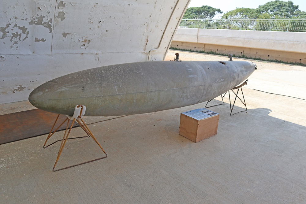 ▲F-86軍刀機的副油箱是飛行中延長航程的重要裝備,通常掛載在機翼下方。它不僅增加飛行續航力,也展現出當年噴射戰機的戰術機動需求,讓參觀者能更直觀地理解軍機設計與作戰配置。
