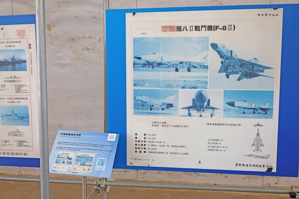 ▲這份中共殲-8Ⅱ戰鬥機(F-8)識別海報,由空軍總司令部情報署於民國78年(1989年)製作,現已解密。海報提供了飛機特徵與識別要點,是當年情報與空中作戰參考的重要資料,也讓現代參觀者得以窺見過去的軍事情報運作方式。