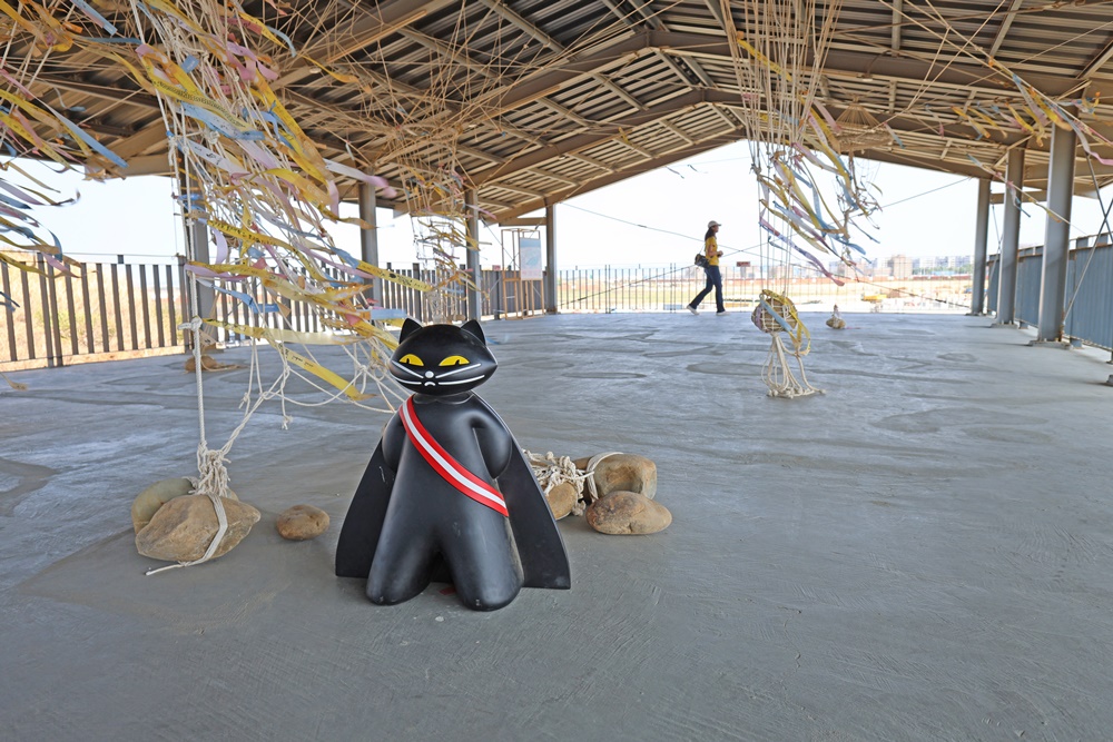 ▲警戒室3樓曾展出過「漂浮家園」裝置藝術,由春捲老師以結繩與航空城石塊創作,表現居民漂浮不定的重建家園心情,以及對扎根與向上攀爬力量的期許。