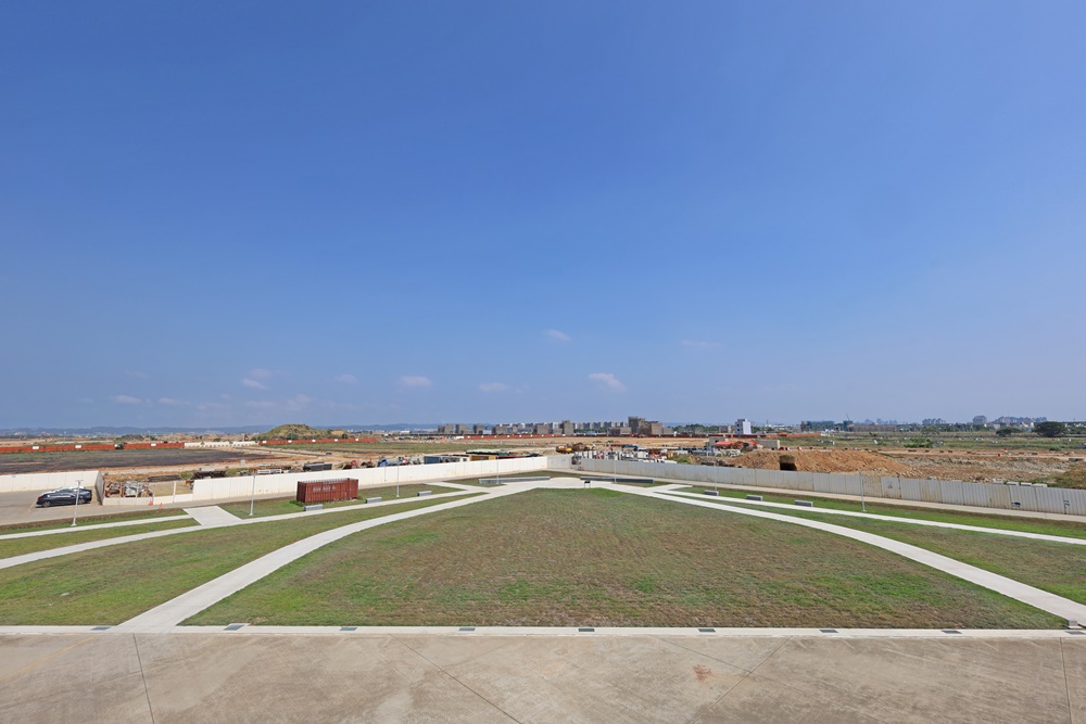 ▲警戒室3樓可以俯瞰基地內正在施工的區域,以及設置中的滑行軌跡步道,讓參觀者能想像飛機起降滑行的路線與過程,為現場探索增添不少趣味。