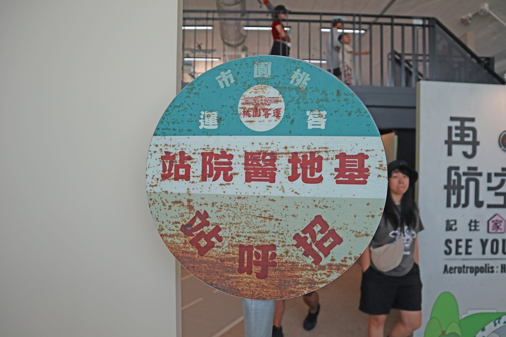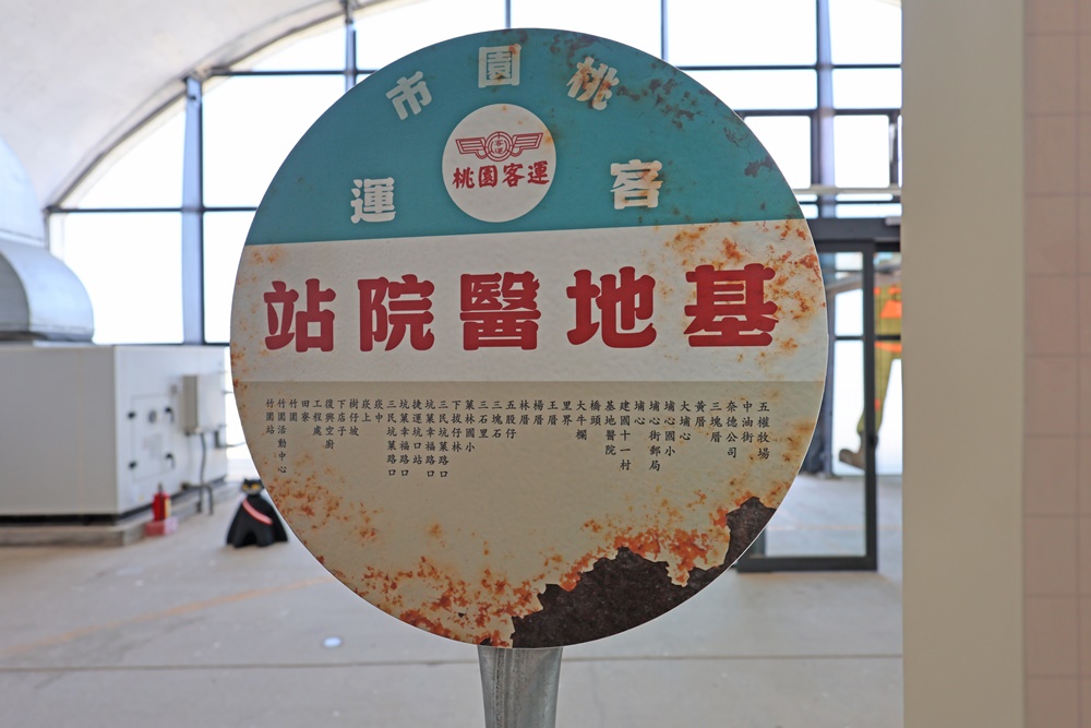 ▲這個桃園市客運「基地醫院站」站牌可是原本的舊站牌,經過風吹雨淋後,主辦單位將它復刻重現,喚起桃園在地人的回憶。