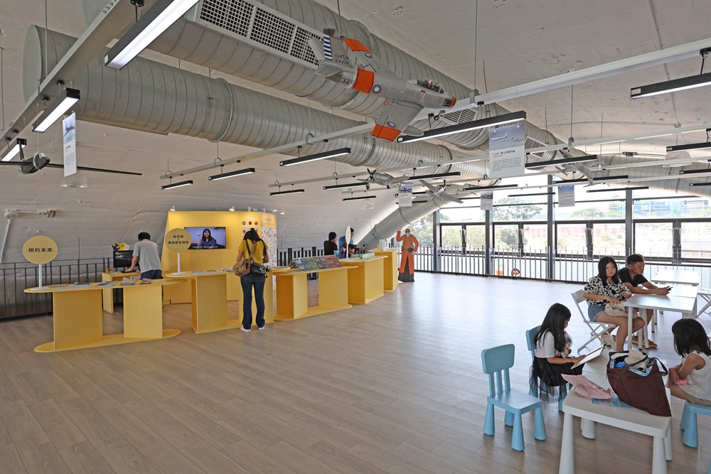 ▲航空城博物館園區05警戒區的1號機庫,以「實習飛行官的視角」為主軸,展示多項空、地勤設備,並回顧桃園基地在保衛臺海的歷史任務,串起從陳康國小到空軍英雄的時光記憶。
