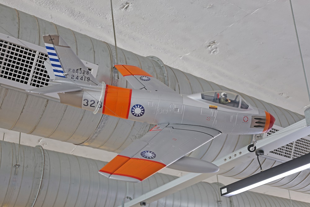▲記得抬頭看看上方的戰機模型:F-86F軍刀式戰鬥機(1954–1970)、P-47雷霆式戰鬥機(1948–1954)、P-51野馬式戰鬥機偵察型(1953–1955)及TF-104星式戰鬥機偵察型(1968–1998)這些模型讓大家可以更直觀地了解不同時期空軍戰鬥機的設計與演進。