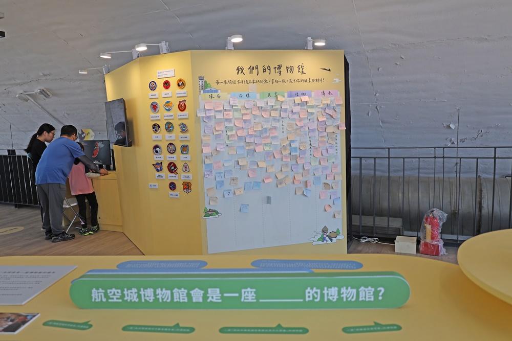 ▲離開前,別忘了拿桌上的便利貼,寫下你對「航空城博物館05警戒區」的想法或期許,讓你的心意也成為這座基地歷史的一部分。