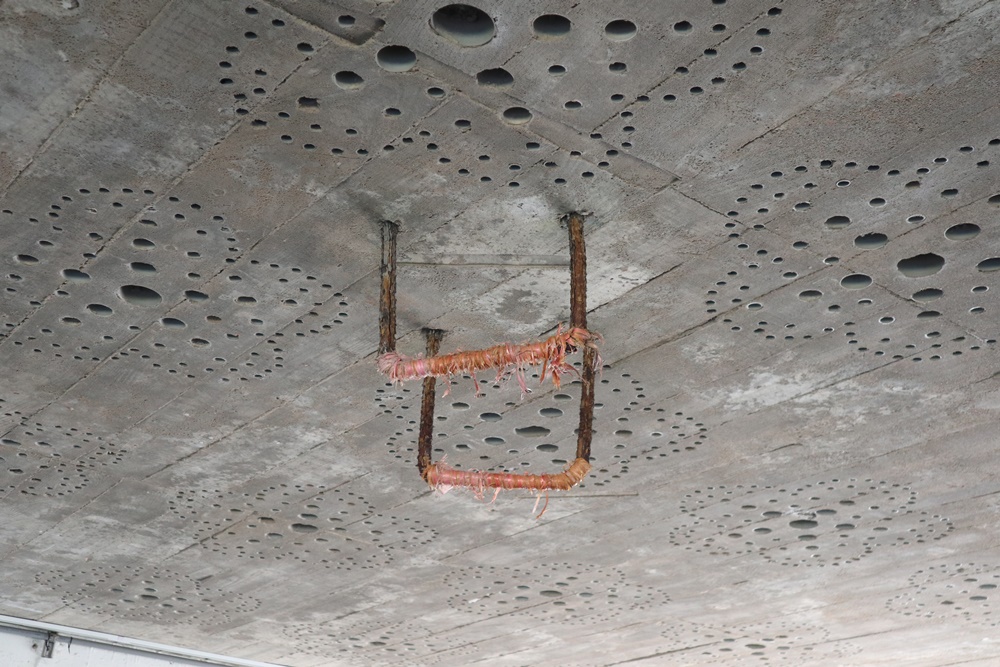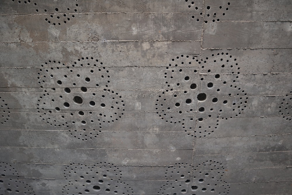 ▲別忘了抬頭看看天花板上那一圈圈梅花形的孔洞,正是過去為了吸震與消音而設計的巧思,至今仍靜靜留存著戰地工事的印記。
