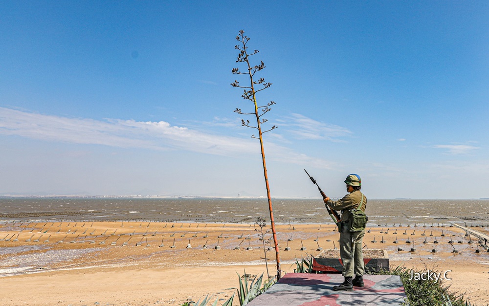 ▲設有兩座海哨,負責監看海面動態。如今放眼望去,海上仍留有橫陳的軌條砦,仍可見軌條砦靜靜橫陳,彷彿在低語那段緊張的防線歲月。(照片版權:Jacky Chang ,感謝支援)