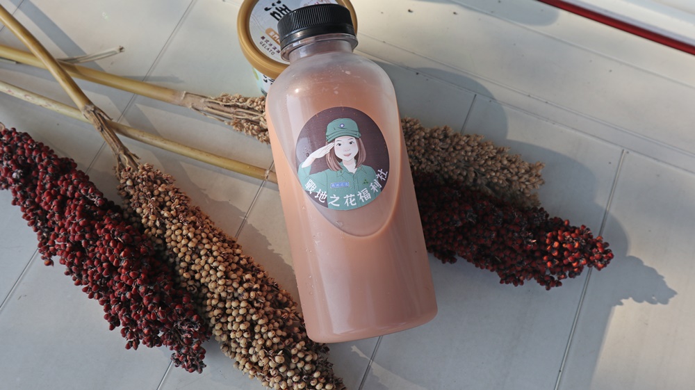 ▲金門限定飲品「 戰地之花福利社 」,以陳年老茶搭配金門紅高粱熬煮,溫潤順口、不傷胃。保留紅高粱的營養價值與淡淡穀香,沒有酒精味卻充滿金門特色,是來金門必嘗的創意飲品!