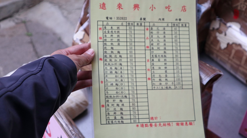 ▲跟傳統早餐店不同,金門金沙的在地早餐充滿濃厚的閩式風情。菜單上分為粥類、麵食類、湯品類與其他類,從熱呼呼的鹹粥到香氣四溢的炒麵,每道料理都是金門人一天的活力來源。