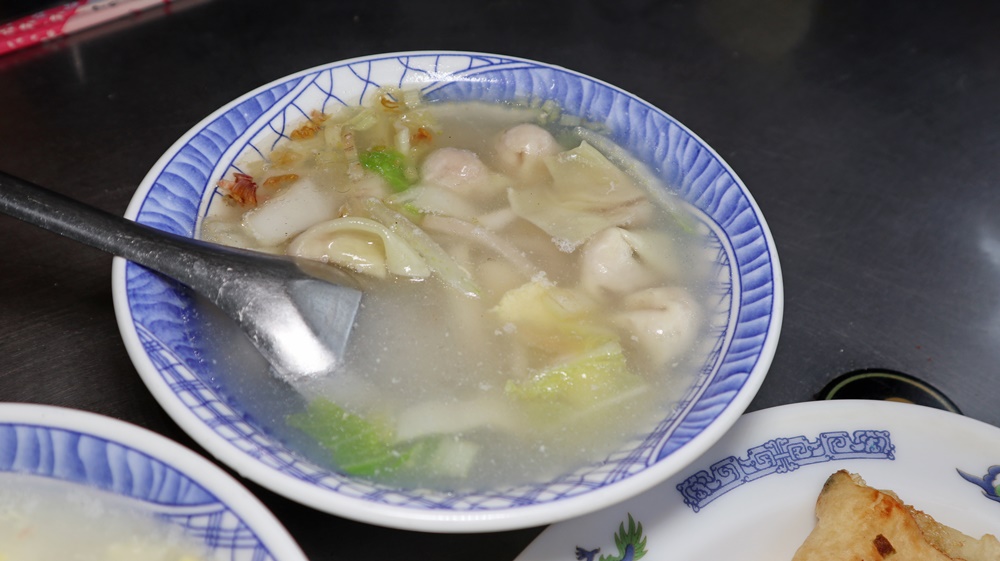 ▲遠來興小吃店的「餛飩湯」特別之處在於加入了酸菜,為清爽的湯頭增添一抹層次感。湯頭走清爽路線,與烈嶼東林市場那碗偏重口味的版本形成明顯對比。從這碗熱騰騰的餛飩湯中,更能感受到金門與烈嶼居民獨有的生活節奏與飲食習慣。